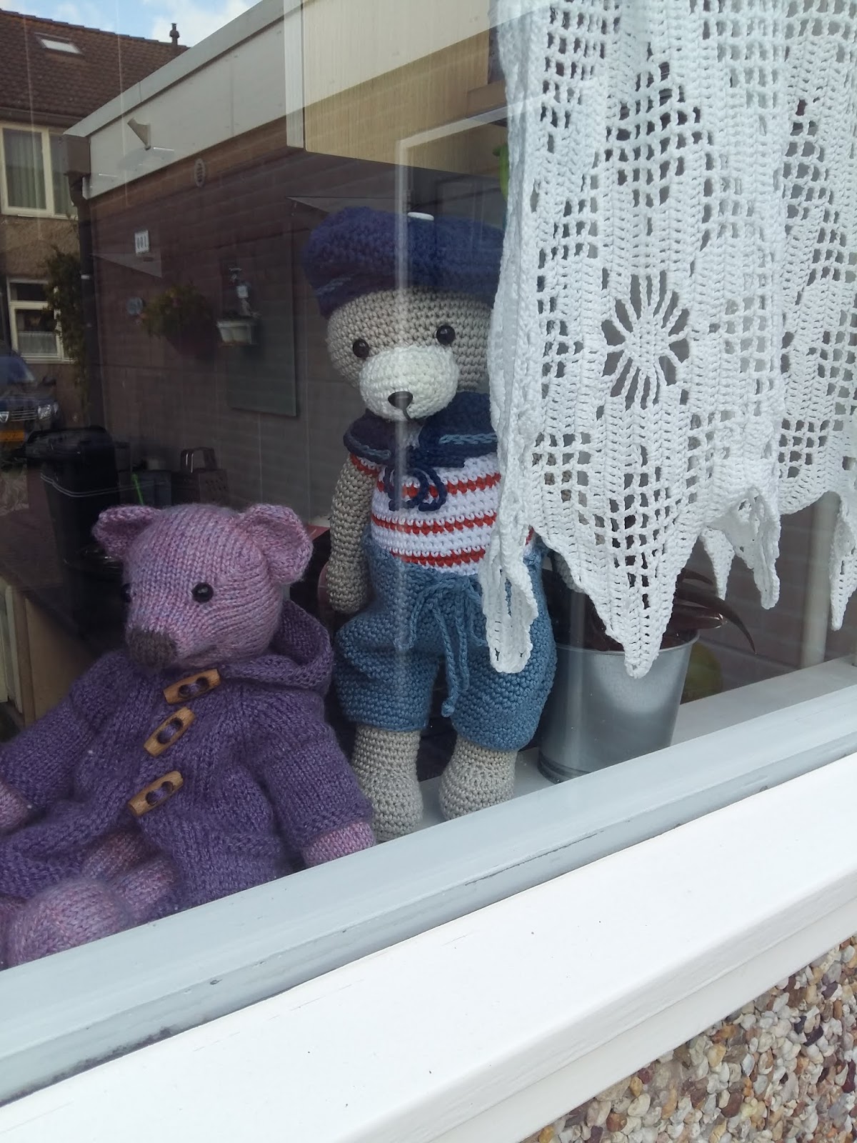 BeantwoordenVerwijderenEn die lieve beren voor het raam zullen veel bekijks hebben.En ik zie daar heel bekende gordijntjes. Die hadden we vroeger thuis ook hangen.